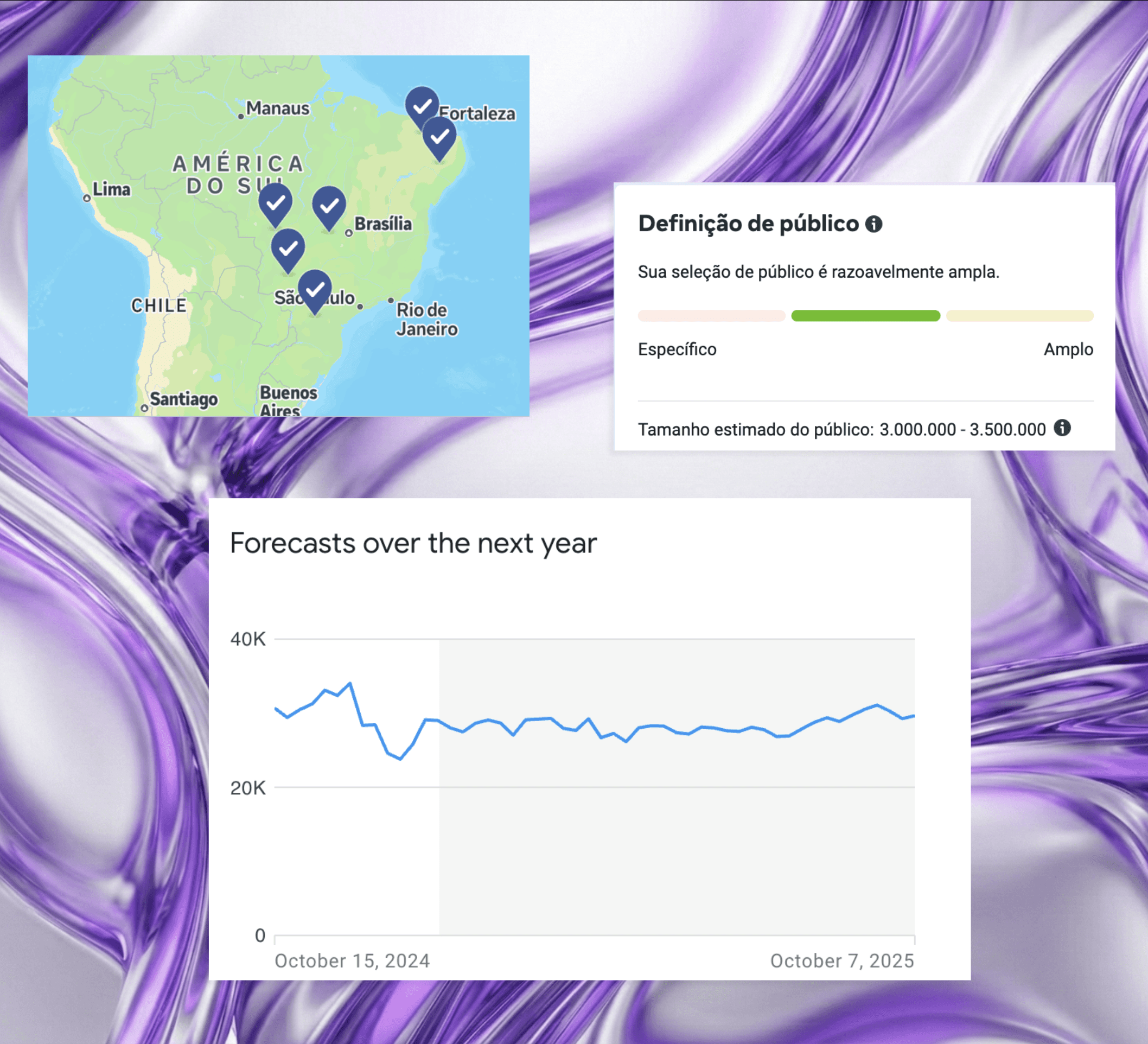 Identificamos o tamanho da sua audiência potencial e o volume de buscas disponíveis para o seu negócio nos principais canais de mídia